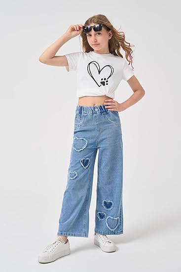 - Wide leg design, full lines,decorate with heart patterns to make your girl look more fashionable.