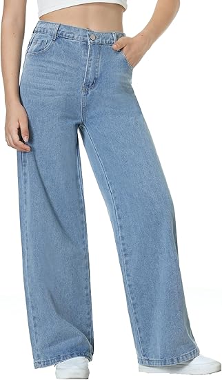 - Wide Leg Jeans: Loose and stylish straight leg jeans have an elastic waist. The high waisted and relaxed fit design is suitable for all types of bodies
