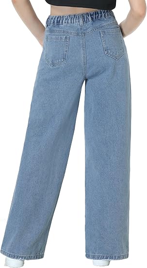 Girls Jeans Pants Wide Leg/Flare/Skinny Denim Pant Ripped High Waist Elastic Band Casual with Pockets (Pant 5)