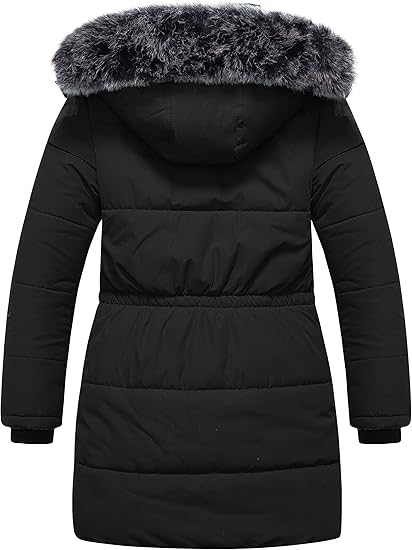 Girl’s Long Parka Warm Winter Coat Water Resistant Quilted Puffer Jacket Snow Outwear(Black)