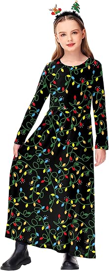 Be the first to review “Girls Maxi Dress Casual Holiday Long Dresses with Pockets (Christmas Lights)”