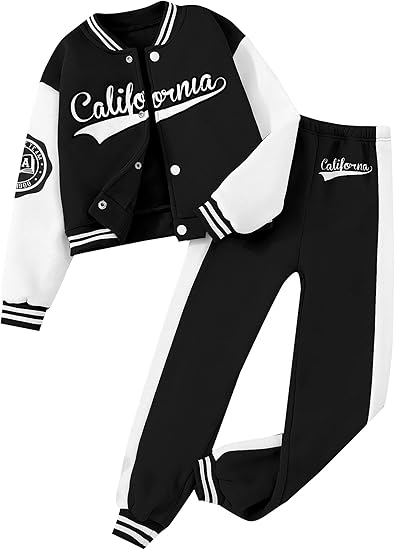 Girls Outfits 2 Piece Activewear Long Sleeve Baseball Jacket and Sweatpants Set Tracksuit(Black)