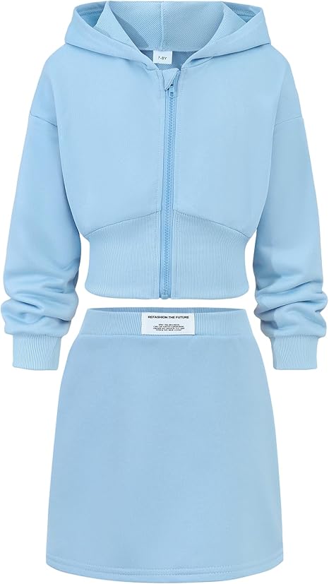 Girls Skirt Set Sweatsuit Hoodie Zip Sweatshirt and Skirts Outfits for Fall Winter Clothes Size(Blue)