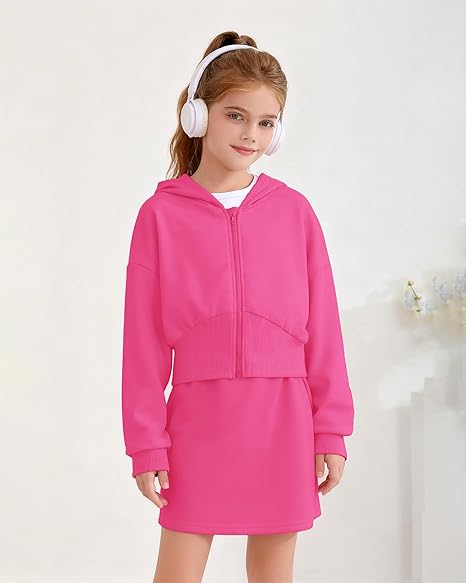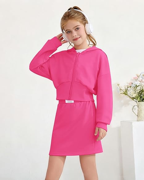 - Casual & Athletic Design : This girls skirt outfits is combining leisure and comfort. Hoodie and full zip, drop shoulder, elastic rib hem and cuff, will provide girls to adjust warm and different style acoording to their idea. Pair with workout skirt, high and elastic waistband.