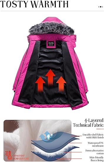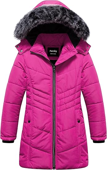 - Best Use: Heavyweight puffer Coat features cute and cozy style that perfect for big days in the city with your little girl.The faux fur trim adds the perfect touch of flair to her winter wardrobe.A stylish faux fur coat for school,town,skiing,snowboarding, or play.Super thick and warm.Perfect for spring skiing and cool-weather adventures.The best gift for daughter, niece, granddaughter,girlfriend, friend’s child