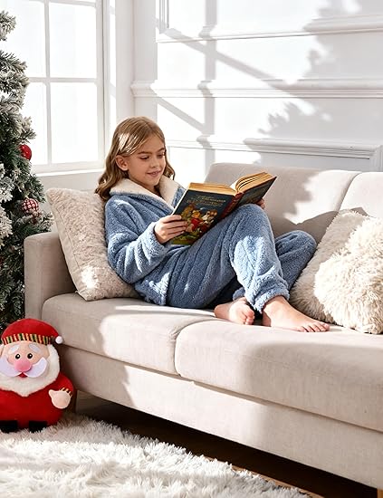 - Stylish & Versatile: Cute girls thermal set is ideal for lazy weekends, palyful time, indoor activities, relaxing at home, or casual outings, the loose fit flannel fleece set ensures your kids enjoy the cold days