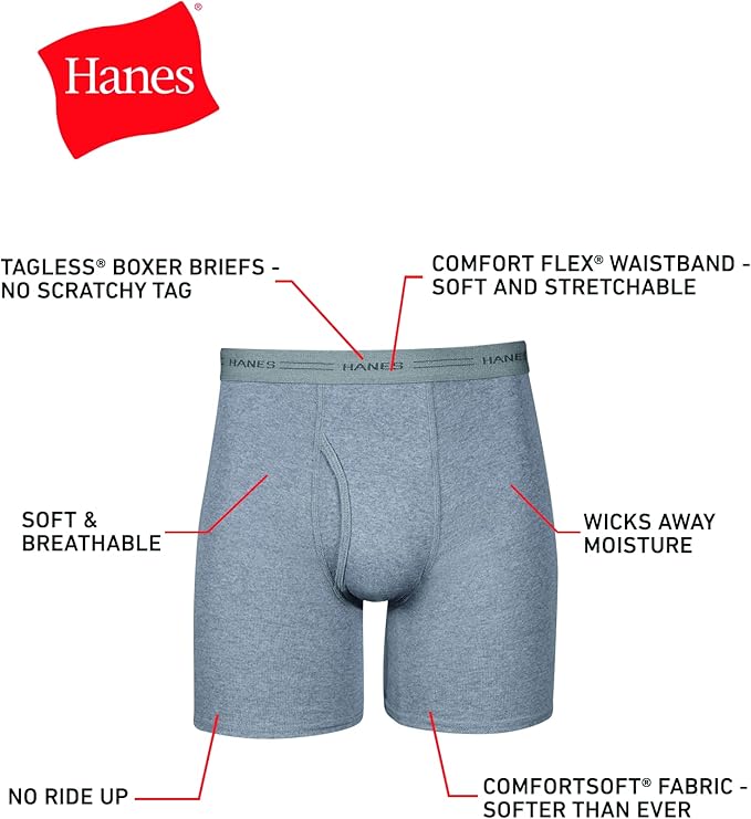 - SUPPORT YOU CAN RELY ON – Experience support and comfort with these men’s underwear designed for breathability and flexibility. The no-ride-up fit and Comfort Flex waistband make these boxer briefs ideal for any activity