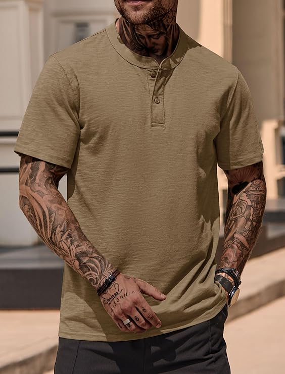DETAILS: Features a henley neck, regular fit, short sleeve, 2 button. This mens summer t shirts is comfortable and stylish to wear, Perfect as a standalone piece or layered under jackets, this henley easily adapts to any look.