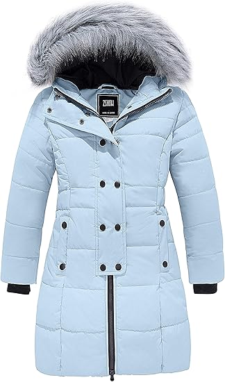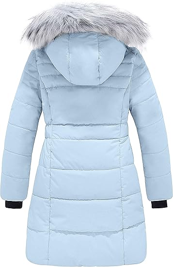 irls’ Long Winter Coat Parka Waterproof Warm Puffer Jacket(Light blue)