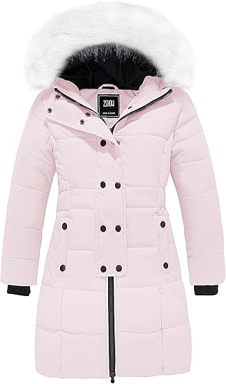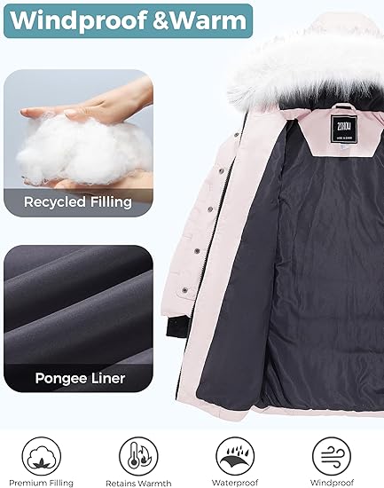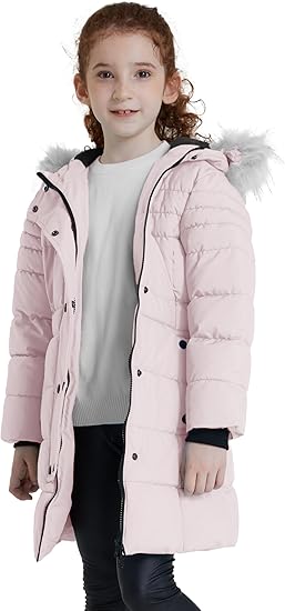 irls’ Long Winter Coat Parka Waterproof Warm Puffer Jacket(Light Pink)