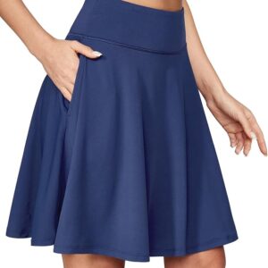 IUGA 20″ Knee Length Skorts Skirts for Women with Pockets Tennis Skirt (Navy)