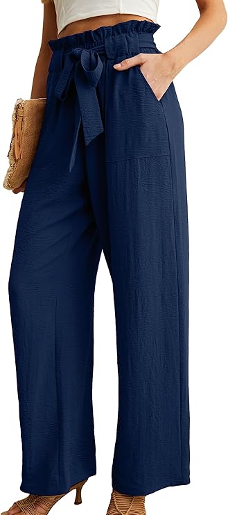 IWOLLENCE Women’s Wide Leg Pants with Pockets High Waist( 03 Dark Blue)