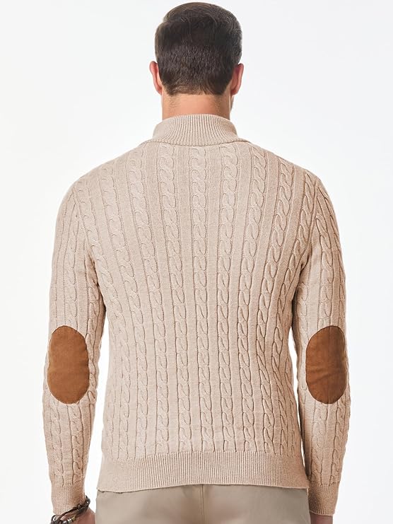 Unique Design: Casual sweater for men features button-up neck, stand collar, chunky warm, basic simple design. The collar and elbows are accented with suede patches, and it includes high-quality button closures.