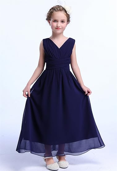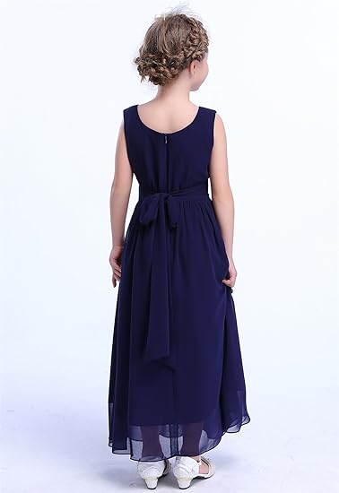 Juniors Long Bridesmaid Dress Party Dresses Flower Girl’s Dress(Navy Blue)