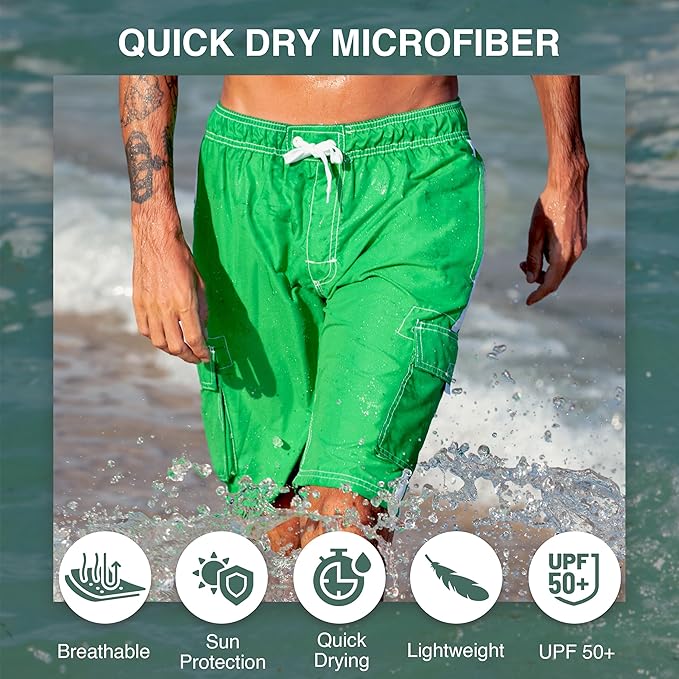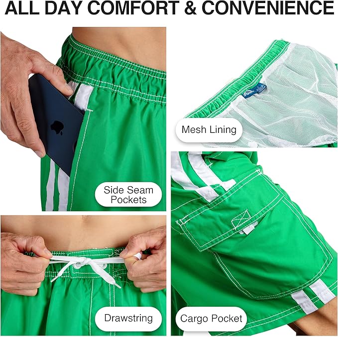 Kanu Surf Mens Barracuda Green Swim Trunks