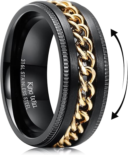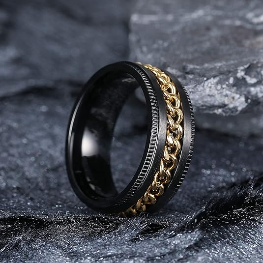 - Anxiety Relief Ring with Fidget Spinner: Engineered for restless minds, this stainless steel men ring features a 360° rotating chain that acts as a silent stress reliever. Designed as both a sleek men wedding band and a discreet fidget ring, its smooth-spinning mechanism helps combat anxiety, restlessness, or meeting-room nerves—all while looking like premium jewelry