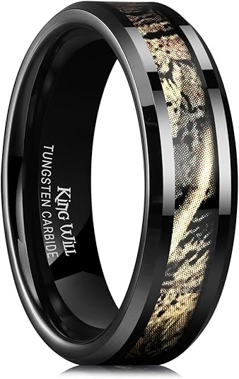 King Will Tungsten Carbide Black & Camo 6mm Wedding Band for Men
