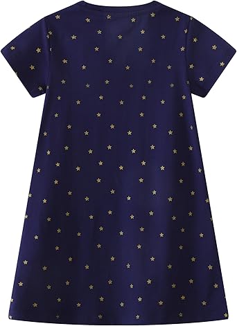 Little Girls Cotton Casual Dress Cartoon Appliques Jersey Summer Dresses Short Sleeved Clothing(Unicorn&star)