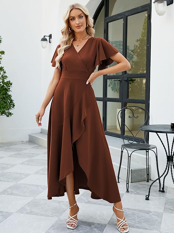 • This formal dresses for women evening party,elegant V-neck,special ruffled sleeves,slim wrap waist,split hem,elegant formal dress for women soft and comfortable,long dresses for women