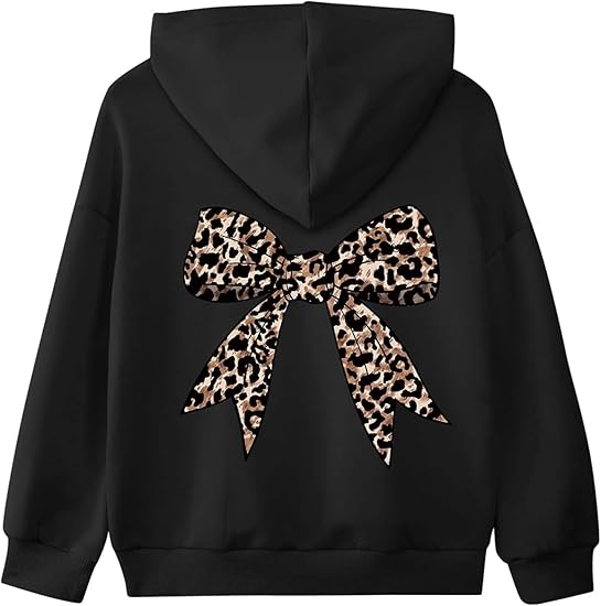 Long Sleeve Hooded Sweatshirt Thick Graphic Hoodie Cute Pullovers Tops(Black and Bow)