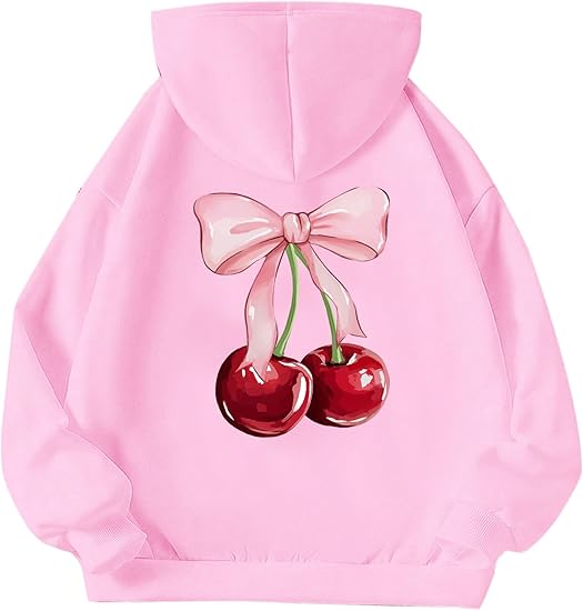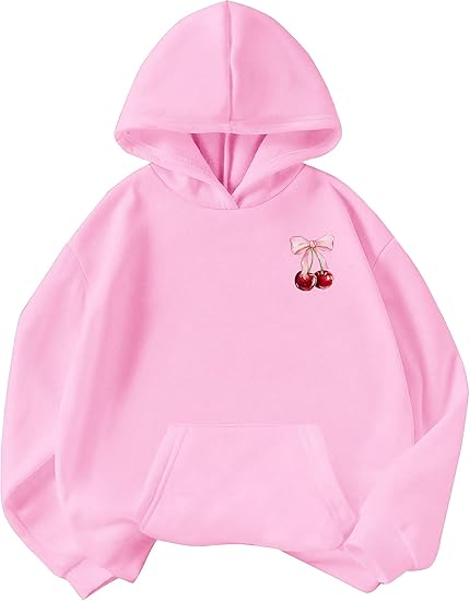 Long Sleeve Hooded Sweatshirt Thick Graphic Hoodie Cute Pullovers Tops(Pink and cherry)