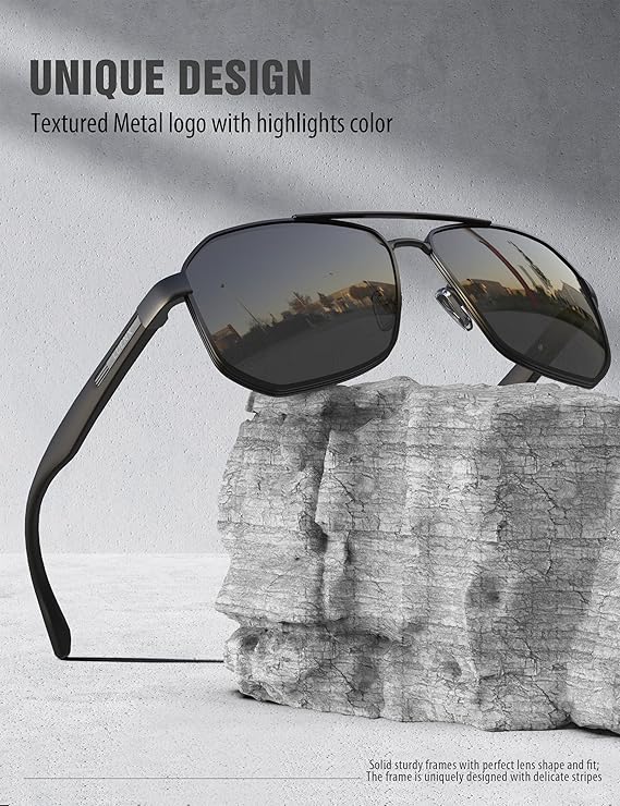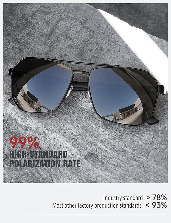 • [SQUARE AVIATOR STYLE WITH POLARIZED LENS] :UV400 eye protection effectively filter & block glares. Designed for driving & outdoor activities;High-definition lens gives you a natural & clear vision;Sturdy & Shatterproof;