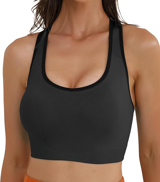 Match Racerback Sports Bras for Women – Padded Seamless Strappy Workout Tops for Yoga Gym Runing Fitness Sports Bras(Np001 Black_new Size)