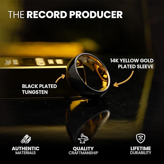 Mens Black Plated Tungsten and Black Zirconium Wedding Bands and Rings ( The Record Producer)