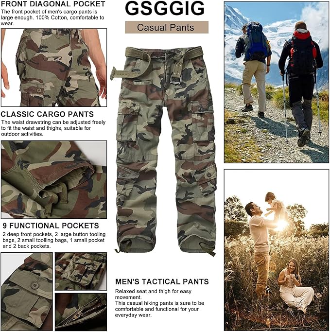 - OCCASION: Whether you’re working hard or enjoying outdoor activities, these black cargo pants men are made to move with you. Suitable for outdoor activities, indoor activities, work, daily leisure, and sports, such as camping, fishing, travel, hunting, hiking, backpacking, construction work, car repair, parkour, etc. camo pants men.