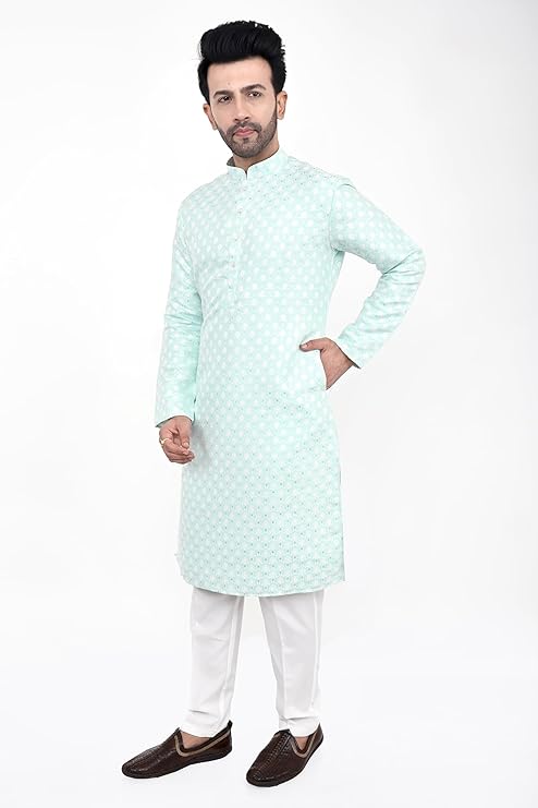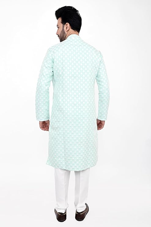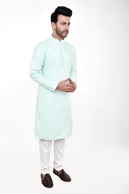 SET CONTENTS: Complete 2-piece ensemble includes a sequin-embroidered kurta and matching pajama for a coordinated traditional look