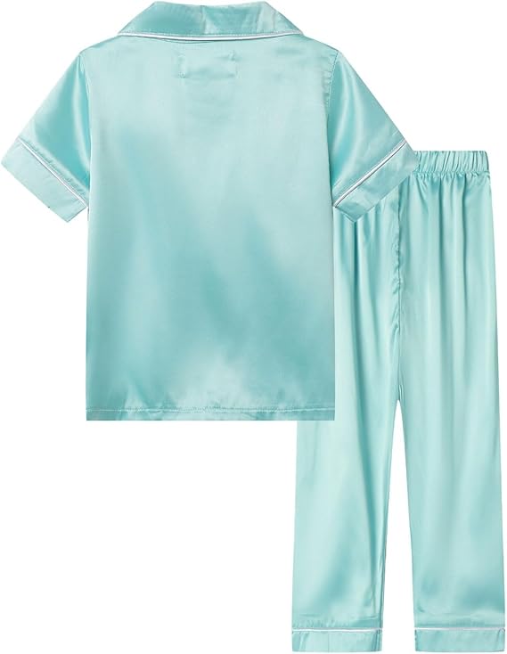 - Great Material: This satin silk pajama set has a matte finish and is crafted from a blend of premium polyester and spandex materials. It is breathable, ideal for maintaining dryness, and provides superior protection for your little girl’s sensitive skin. Resistant to wrinkling, non-fading, and easy to maintain.