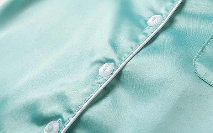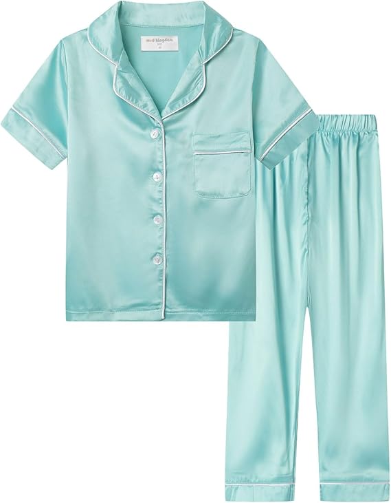Mud Kingdom Little Girl Satin Silk Pajamas Set Short Sleeve Button Down 2 Piece Summer Loungewear(Mint Green)