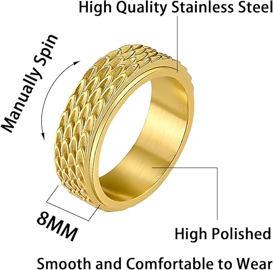 • Material: This dragon scale anxiety ring is made of high quality stainless steel, with highly polished interior and smooth rotation. The dragon scale carving is clear and durable.