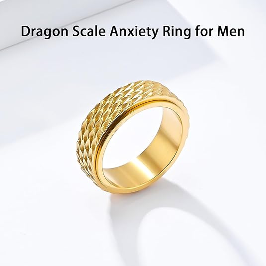 • Unique Design: This is a brand new spinner anxiety ring. We carved the shape of dragon scale on the ring surface, which means noble, rich and auspicious. This fidget spinner ring not only has a beautiful moral, but also is a very fashionable spinner fidget ring.