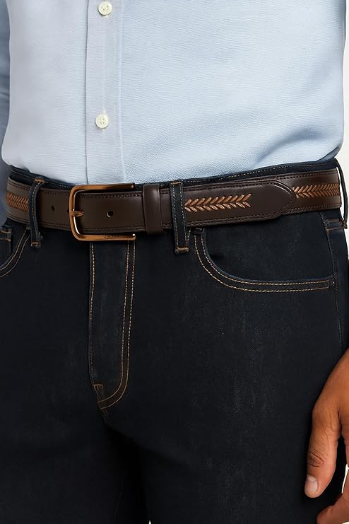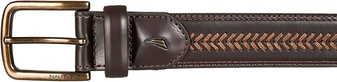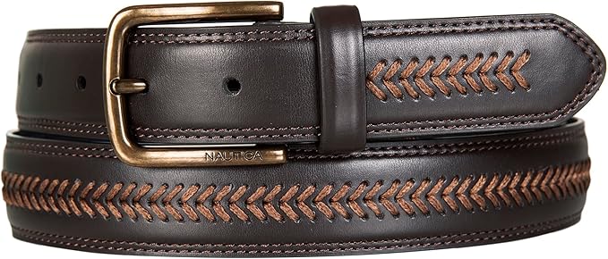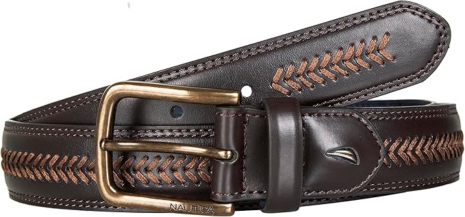 Nautica Mens Double Stitch Dress Leather Laced – Brown Belt