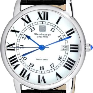 Steinhausen Men’s S0718 Classic Delémont Swiss Quartz Stainless Steel Watch with Black Leather Band
