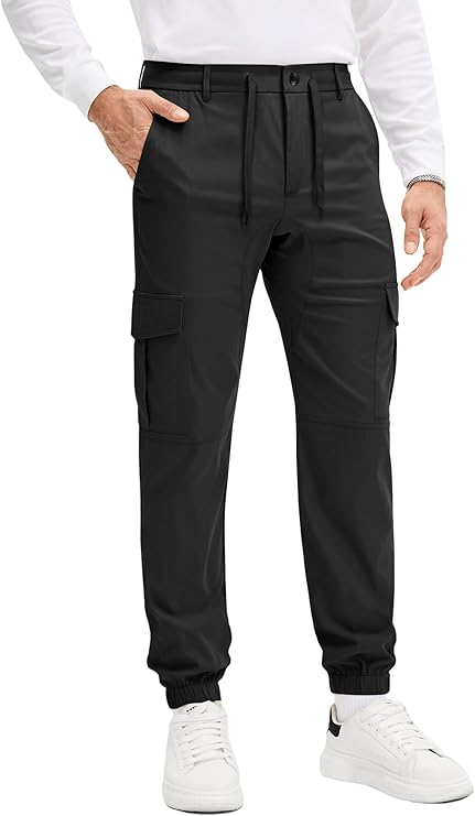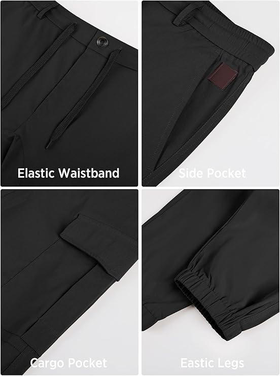 PLEPAN Mens Casual Cargo Black Joggers