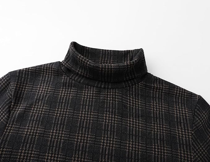 Poriff Knitted Turtleneck Pullover Black-brown Plaid Sweater