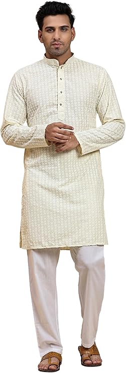 Kurta Set Fabric: Cotton | Type: Indian Kurta Set | Pattern: Sequence | Length: Above Knee | Sleeve: Long Sleeve | Fit: Regular | Collar: Mandarin | Pocket: 2 Side Pocket