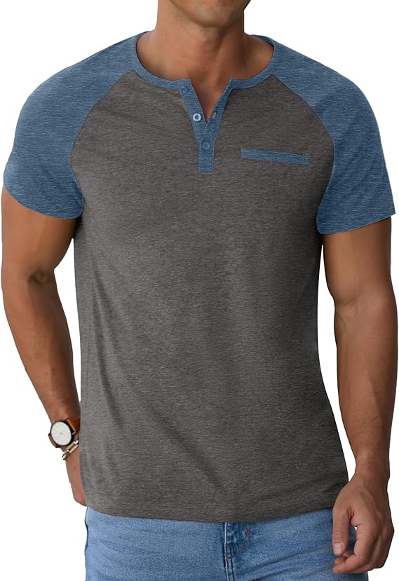 Match: These fashion henley t-shirts can easily be paired with stylish jeans, chinos, formal trousers, or shorts for a laid-back, everyday outfit. Add a hat and sunglasses for a relaxed, carefree vibe, perfect for the summer season.