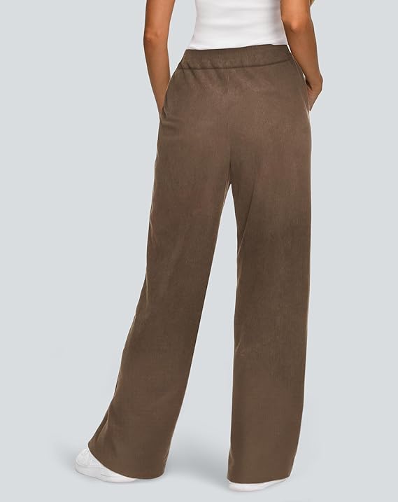SEMARO Womens Wide Leg Corduroy Pants Casual Elastic High Waist Loose Fit(Brown)