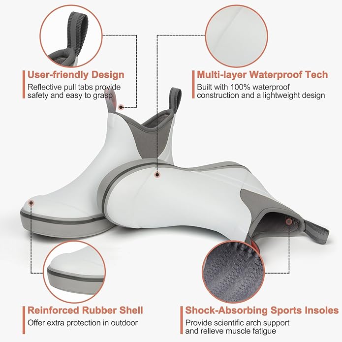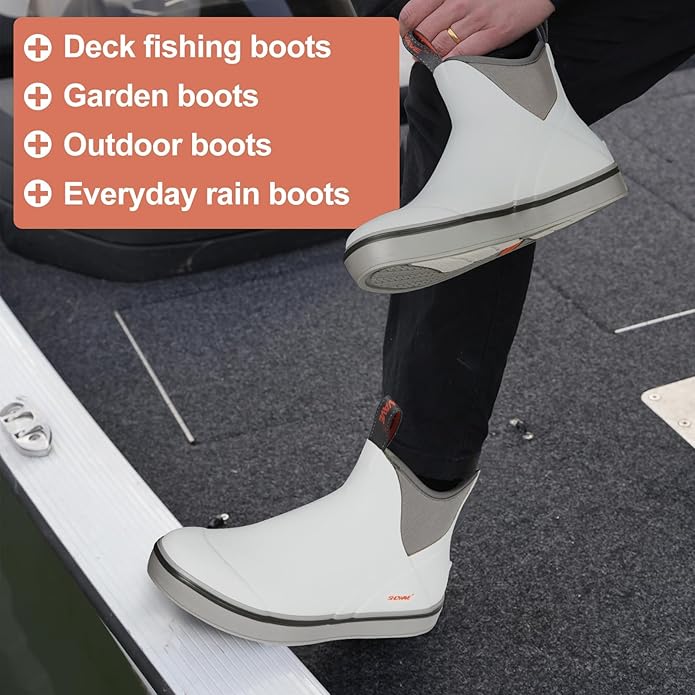 - MULTI-LAYER WATERPROOF TECH: This performance fishing deck boot is built with 100% waterproof construction and a lightweight design. Full neoprene and rubber upper shell keep you feet dry and warm in cold water. Multi layers of materials enhance the performance of deck boots, providing durability and comfort.