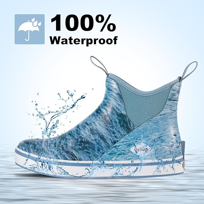 - MULTI-LAYER WATERPROOF TECH: This performance fishing deck boot is built with 100% waterproof construction and a lightweight design. Full neoprene and rubber upper shell keep you feet dry and warm in cold water. Multi layers of materials enhance the performance of deck boots, providing durability and comfort.