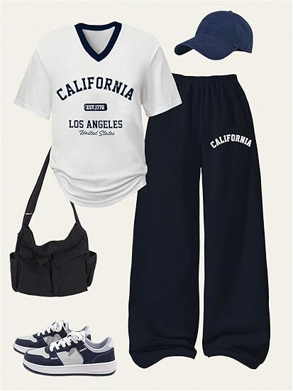 - Feature: Girls summer clothes, including a v-neck graphic tee with sporty number print and matching wide-leg pants with elastic waistband