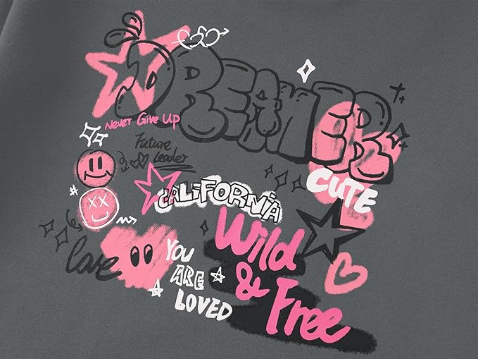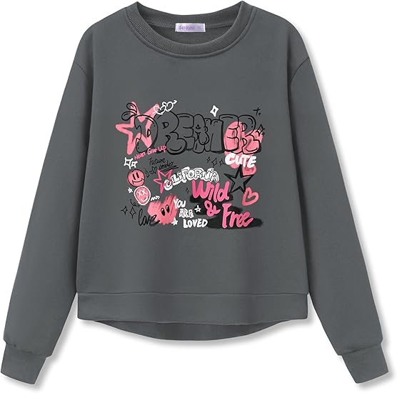 Sweatshirt for Little & Big Girls – Cool Top Clothes Stylish Graffiti/California/New York (Grey)