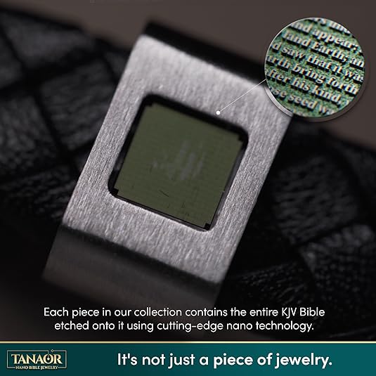 - Nano-Tech Men’s Serenity Leather Bracelet: Features the full King James Bible 1,189 chapters engraved onto a microchip smaller than a grain of rice, embedded within the bracelet using e-beam lithography for a discreet symbol of faith and devotion.