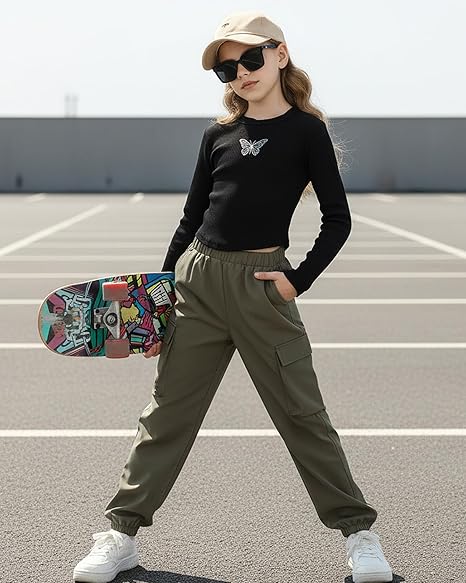- Comfortable Material:Long sleeve cute tops for teen girls is made of elastic cotton ribbed,skin-friendly and soft,cargo sweatpants is selected by woven material,tough and comfortable,outline a slimming figure.