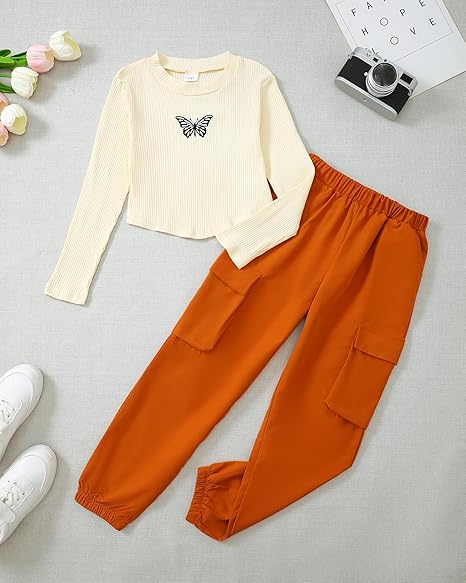 - Package Inclued:This teenage girl clothes inclued long sleeve tee top and cargo sweatpants.Machine wash or hand wash.