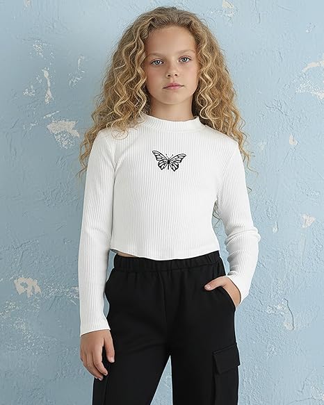 - Feature:Mock neck design long sleeve star printed crop top is so fashionable for tween teen girls,as preppy clothes for back to school outfits is attractive and all-match,matching with camo or solid cargo pants which has 2 waist pockets and 2 side pockets,stylish yet practical.Elastic waistband is more comfortable and suitable for different waistline of your girls,and tight trouser legs outline a slimming and trendy look.