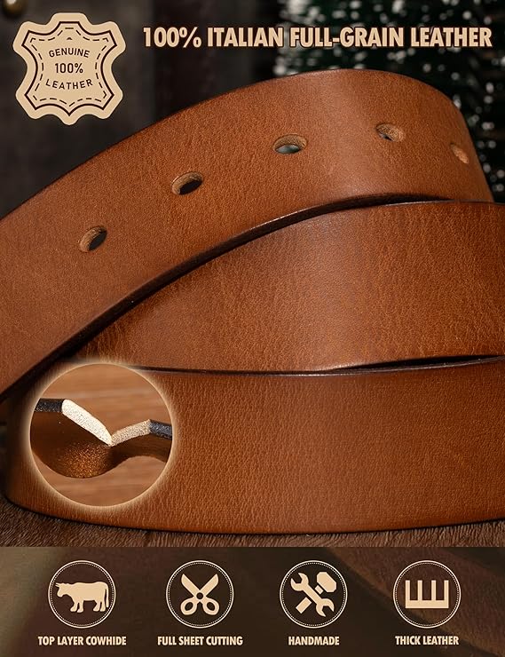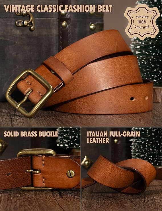 Thicken Full Grain Leather Khaki-a Mens Belt